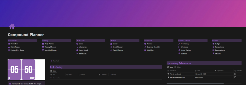 Discover the secret to smart, effective days with the Compound Planner β your digital key to unlocking a world where productivity meets peace of mind. This planner is designed for the ambitious, the dreamers, and anyone ready to take charge of their life.